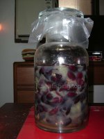 - 葡萄處理:葡萄洗淨瀝乾放在通風有太陽餘光能照到之處(勿直曬),太陽大時晾一上午即可,若太陽不大則要晾到下午三、四點.其主要目的是讓果皮充分乾燥,在日後的製造過程中不易腐壞變質。
